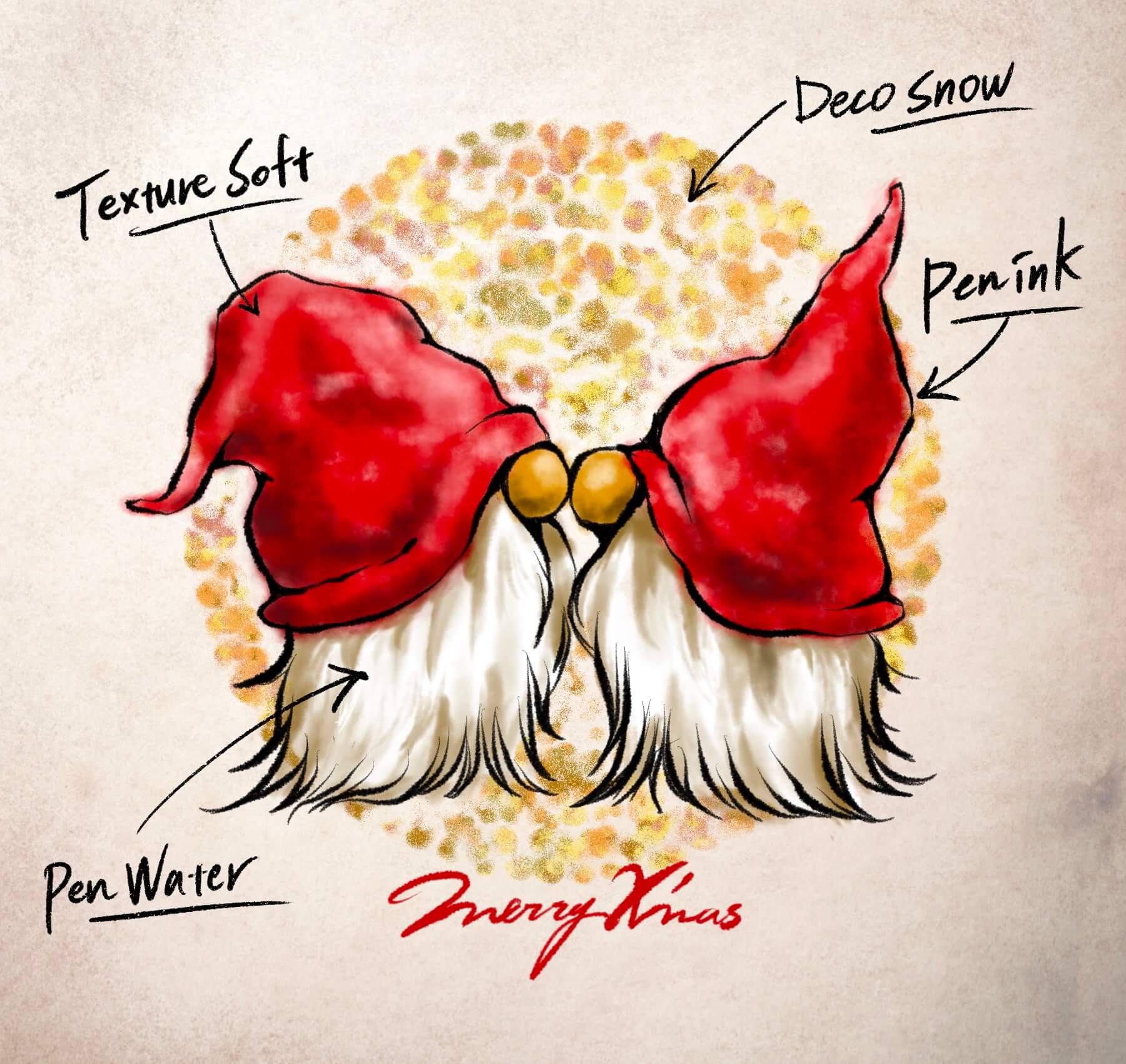 Pen Ribbon / Pen ink / Pen water Deco star / Deco Heart / Deco Ball / Deco Tree / Deco Needle / Deco Flake / Deco snow / Texture spicy / Texture light / Texture soft / Texture crispy / Texture rough / Texture grain